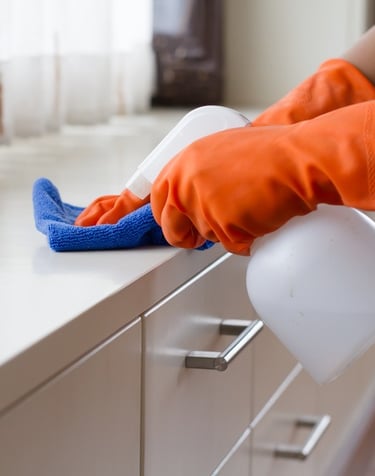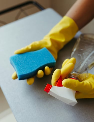 Limpieza de superficies visibles (escritorios, mesas, estantes)